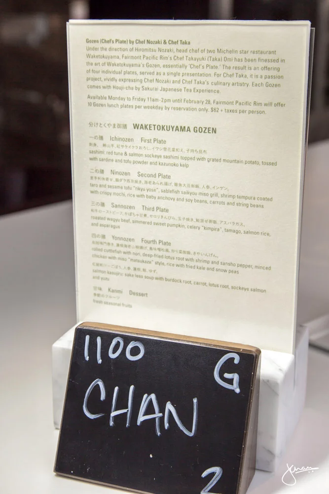 Gozen Lunch At Fairmont Pacific Rim Rawbar Jenn Chan Photography